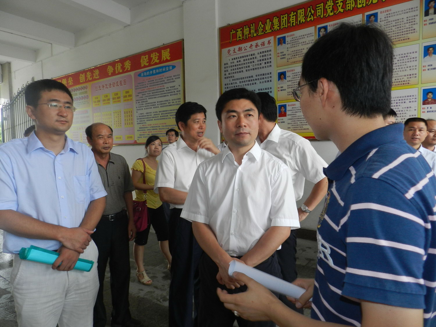 2012年8月8日上午,共青團(tuán)廣西區(qū)委書記白松濤一行在玉林市委副書記陳延國、北流市委書記李玉振的陪同下,深入我公司調(diào)研青年就業(yè)創(chuàng)業(yè)和兩新組織團(tuán)建等工作。